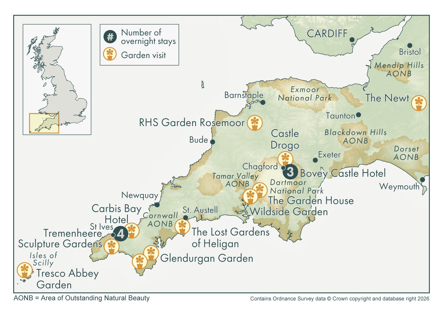 - Superb hotels, one on the picturesque Cornish Coast and one in the beautiful Dartmoor National Park.
