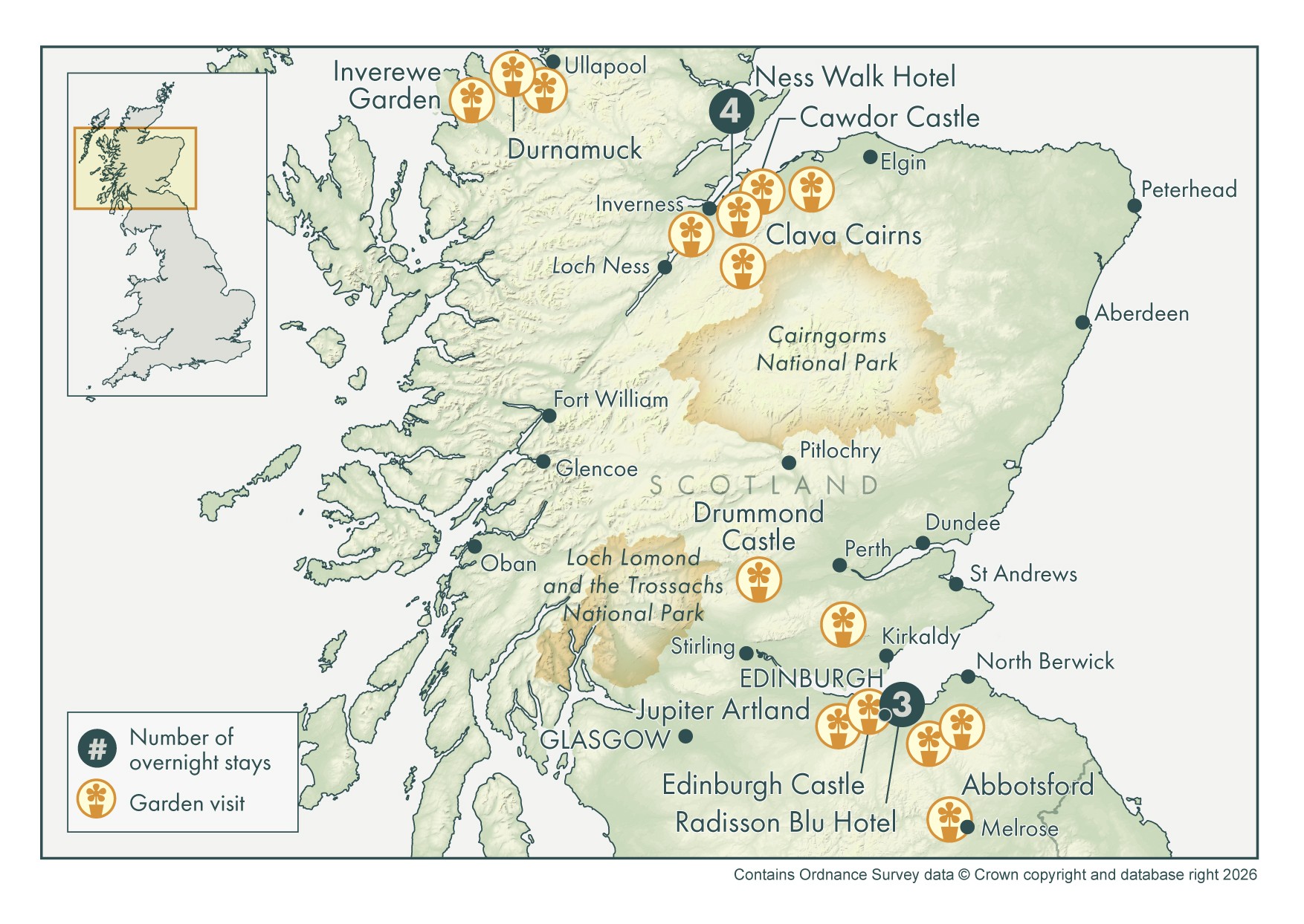 Note: Some garden visits await final confirmation at the time of publication. Our tour starts and ends in Edinburgh. We can provide advice on travel planning.